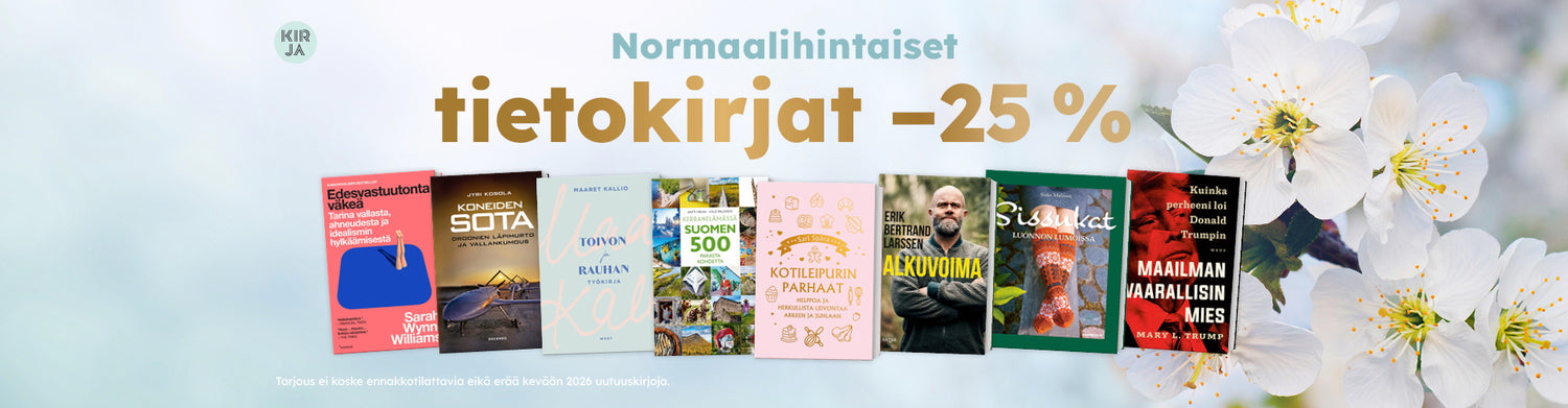 Liittymisetuna saat 20 % alennuksen Kirja-verkkokauppaan. Tämän lisäksi saat ajankohtaisia tarjouksia, etuja ja tietoja uutuuskirjoistamme.